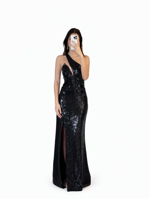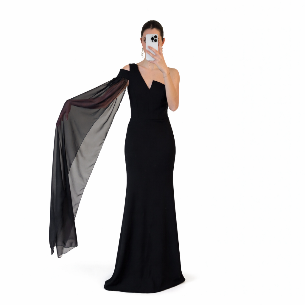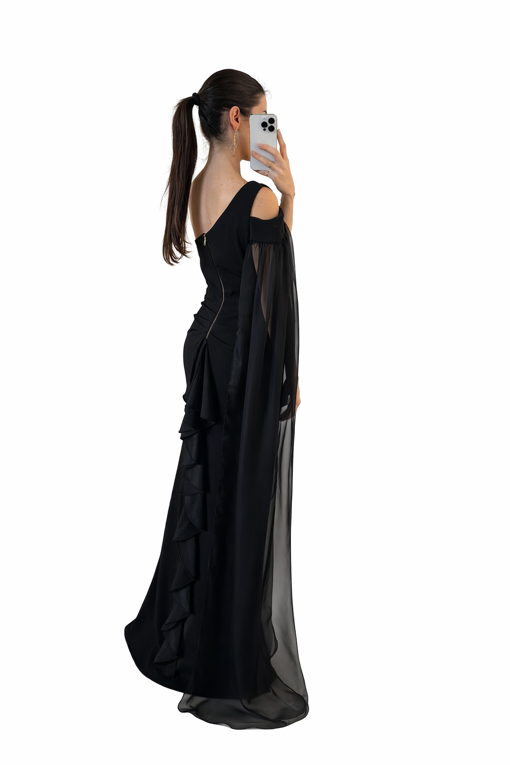 Simple black dress with ruffles from the back.