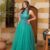 A flowy emerald piece with delicate beadwork and soft tulle movement.