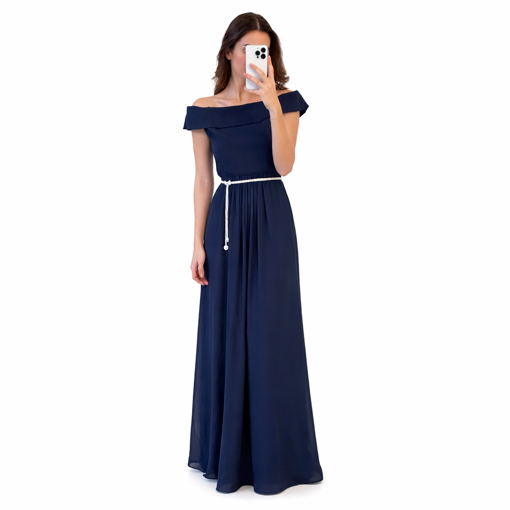 Simple navy blue off-shoulder dress