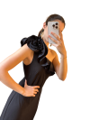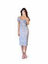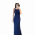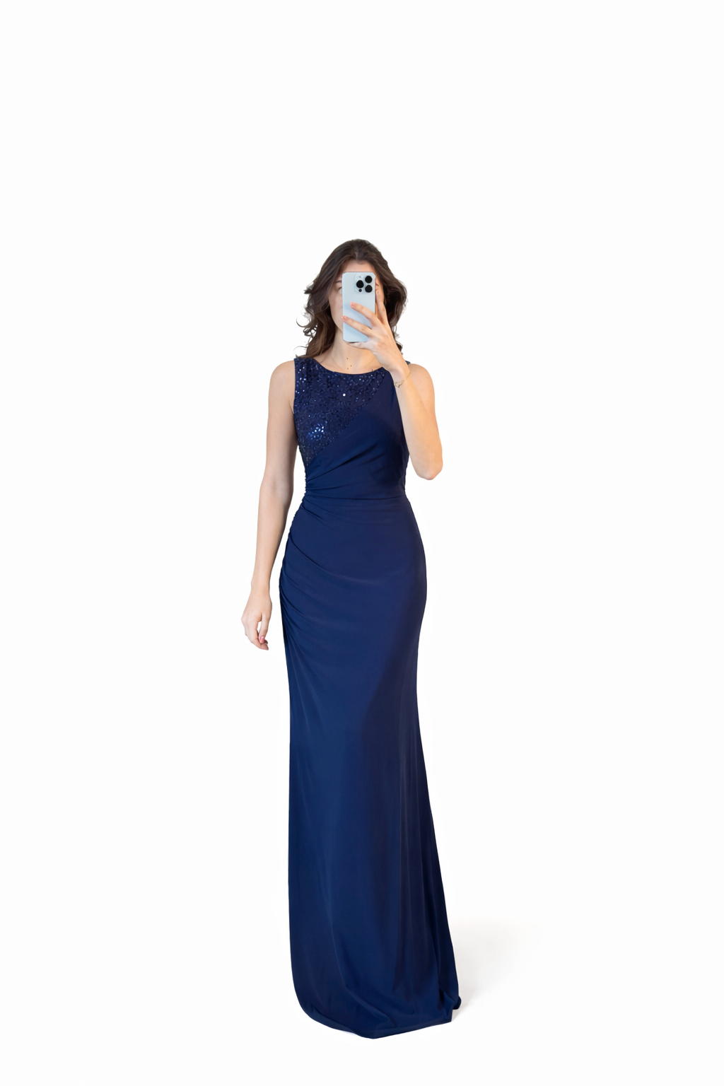 Navy blue dress featuring half chest paillette detail